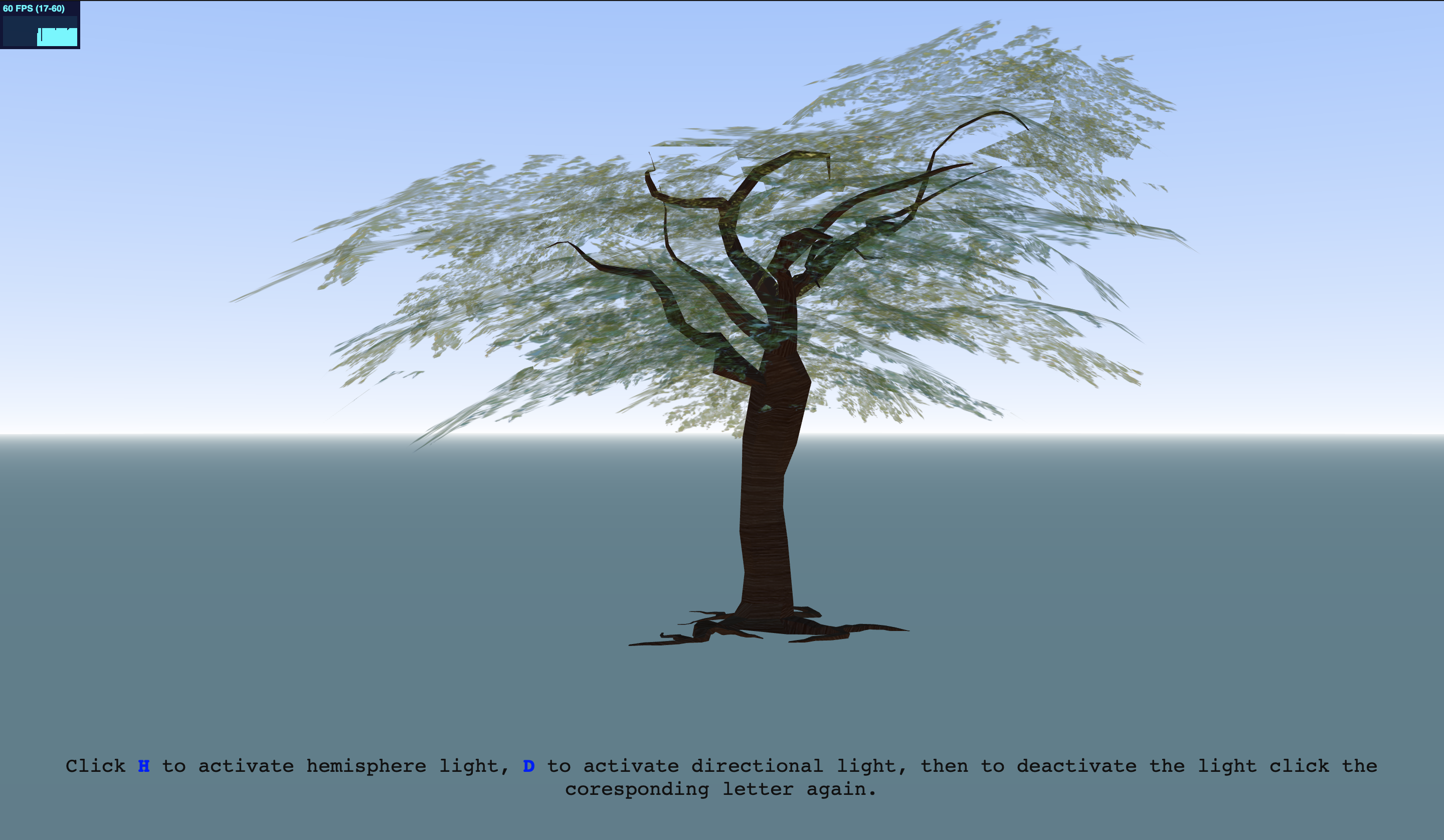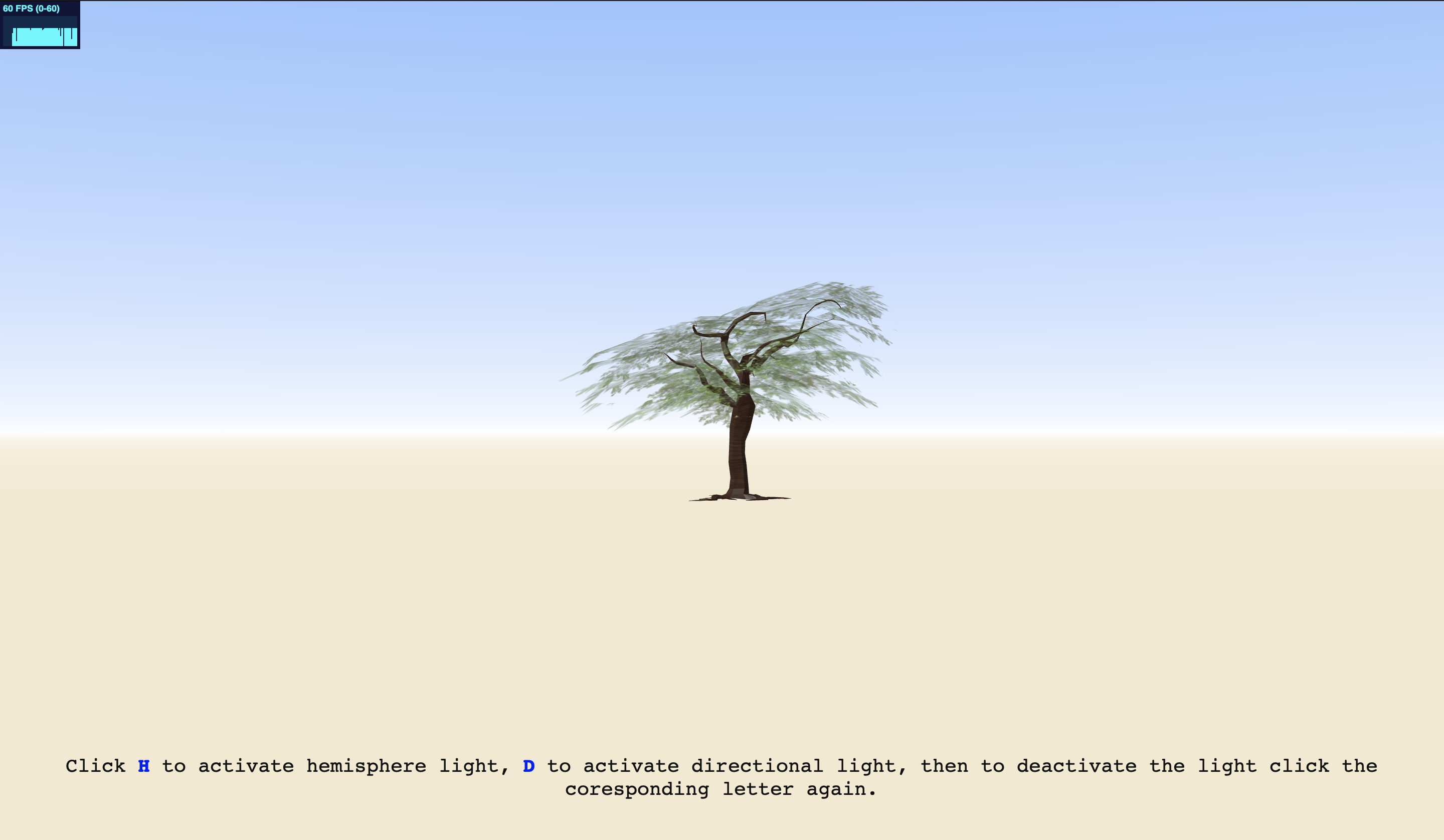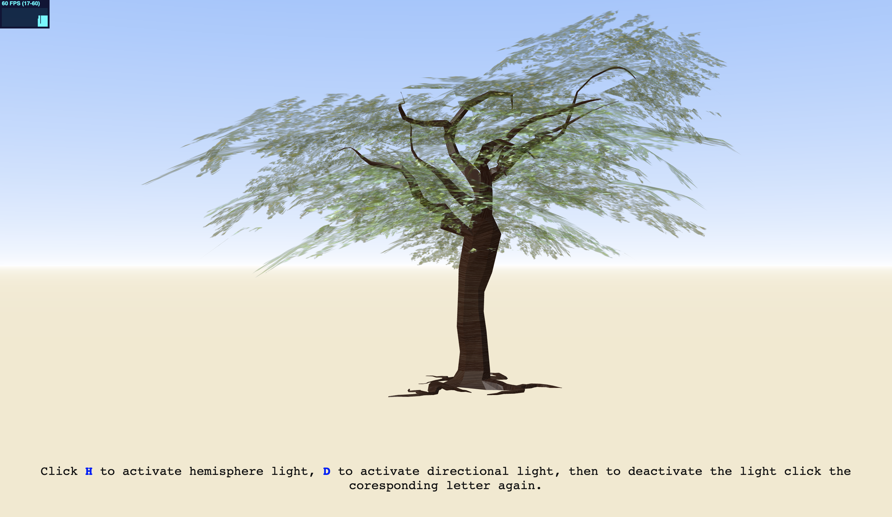 The panning allows the user to look around the scene, I set the miniamum and maxiamum settings so the user couldn't go too far from the tree but still be able to not see it at all if you just want to look at the scene background, there was a dampening effect also added to reduce the effects that may stop the occilation. The stats added to the bottom of the code help set the frames per second meter so you can keep an eye on loading time of the scene.